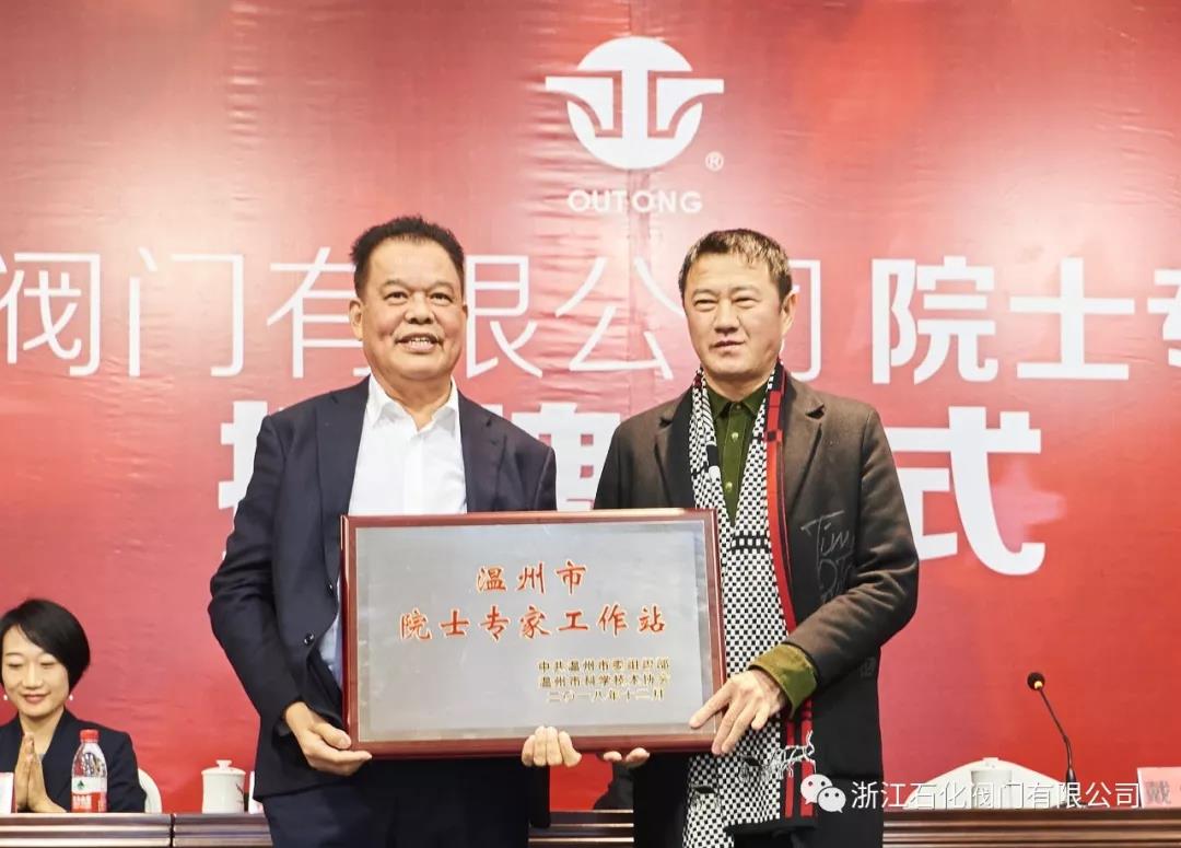 溫州市科協(xié)副主席戴維文向浙江石化閥門有限公司董事長楊榮水先生頒授“院士專家工作站”牌匾,浙江石化閥門有限公司總經(jīng)理楊選榮向中國工程院陳學(xué)東院士頒發(fā)聘書,就此,院士工作站正式建站。